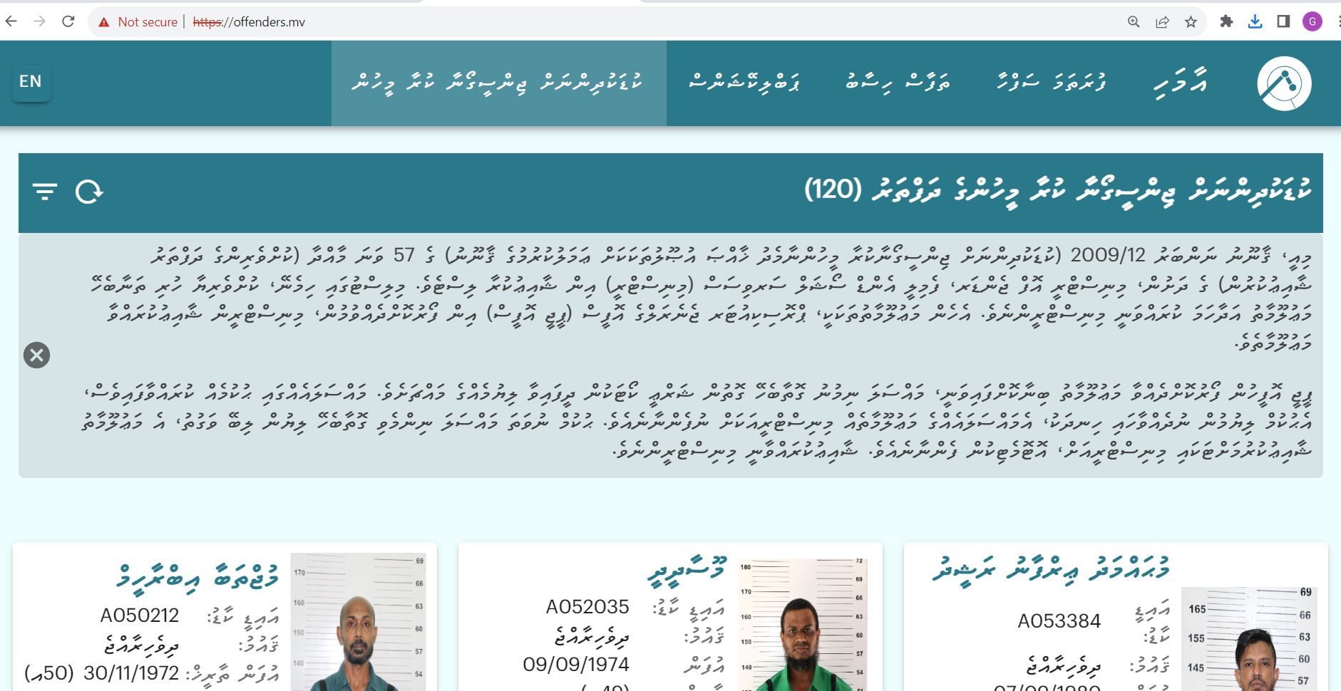 ކުޑަކުދިންނަށް ޖިންސީ ގޯނާކުރާ މީހުންގެ ދަފްތަރެއް އެންމެ ފުރަތަމަ ފަހަރަށް އެކުލަވާލައިފައި ވަނީ 2018 ވަނަ އަހަރުގައެވެ. މި ދަފްތަރުގައި އެމީހުންގެ ވަނަވަރުގެ އިތުރުން ކުރި ކުށުގެ ބާވަތާއި، ޙުކުމް ތަންފީޒުކޮށް ނިމޭ ތާރީޚް ފަދަ މުޙިންމު މަޢުލޫމާތުތައް ހިމެނެއެވެ. މި ދަފްތަރު އަދާހަމަކޮށް ޝާއިއުކުރަމުން އައިކަމުގައި ވީނަމަވެސް އާންމުންނަށް އެ ވެބްސައިޓަށް ވާޞިލުވުމަށް ދަތިތަކާއި ކުރިމަތިވިއެވެ.
