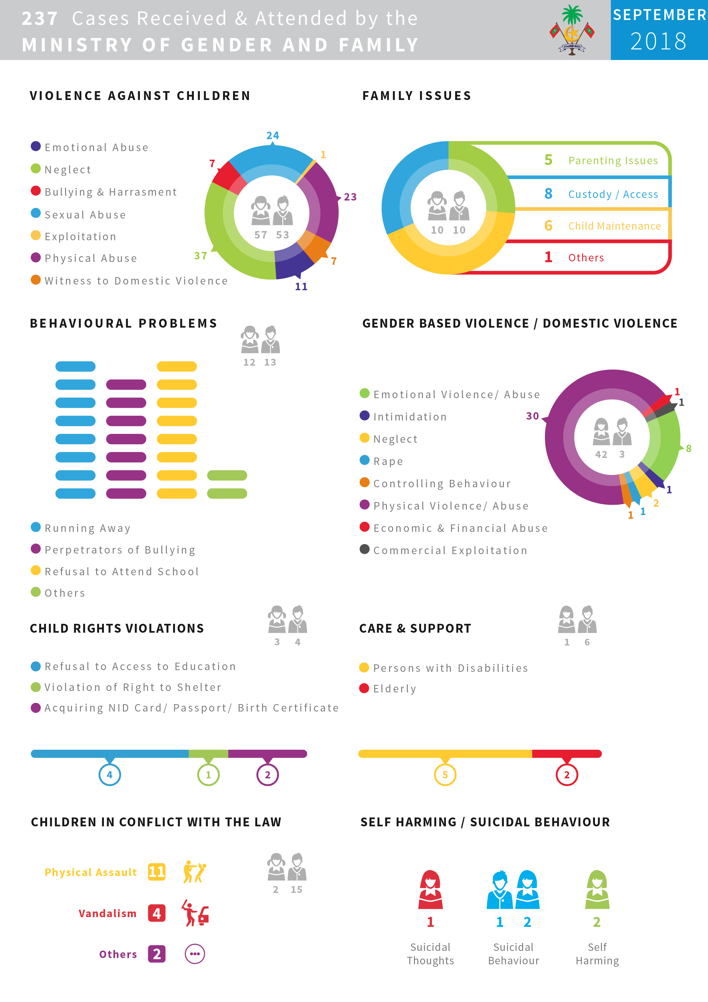Ministry of Gender and Family received and attended to a total of 237 cases in September 2018.