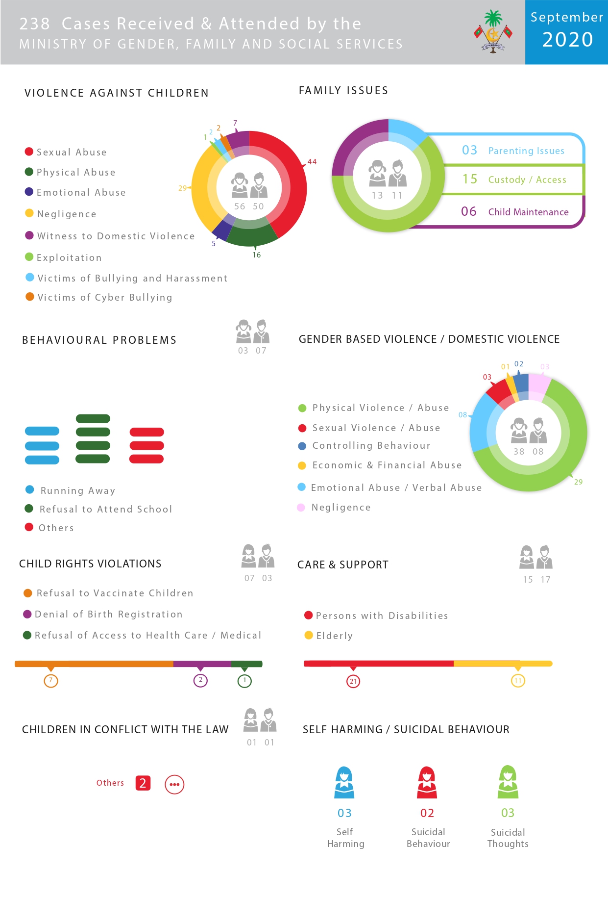 Ministry of Gender, Family and Social Services received and attended to a total of 238 cases in September 2020.