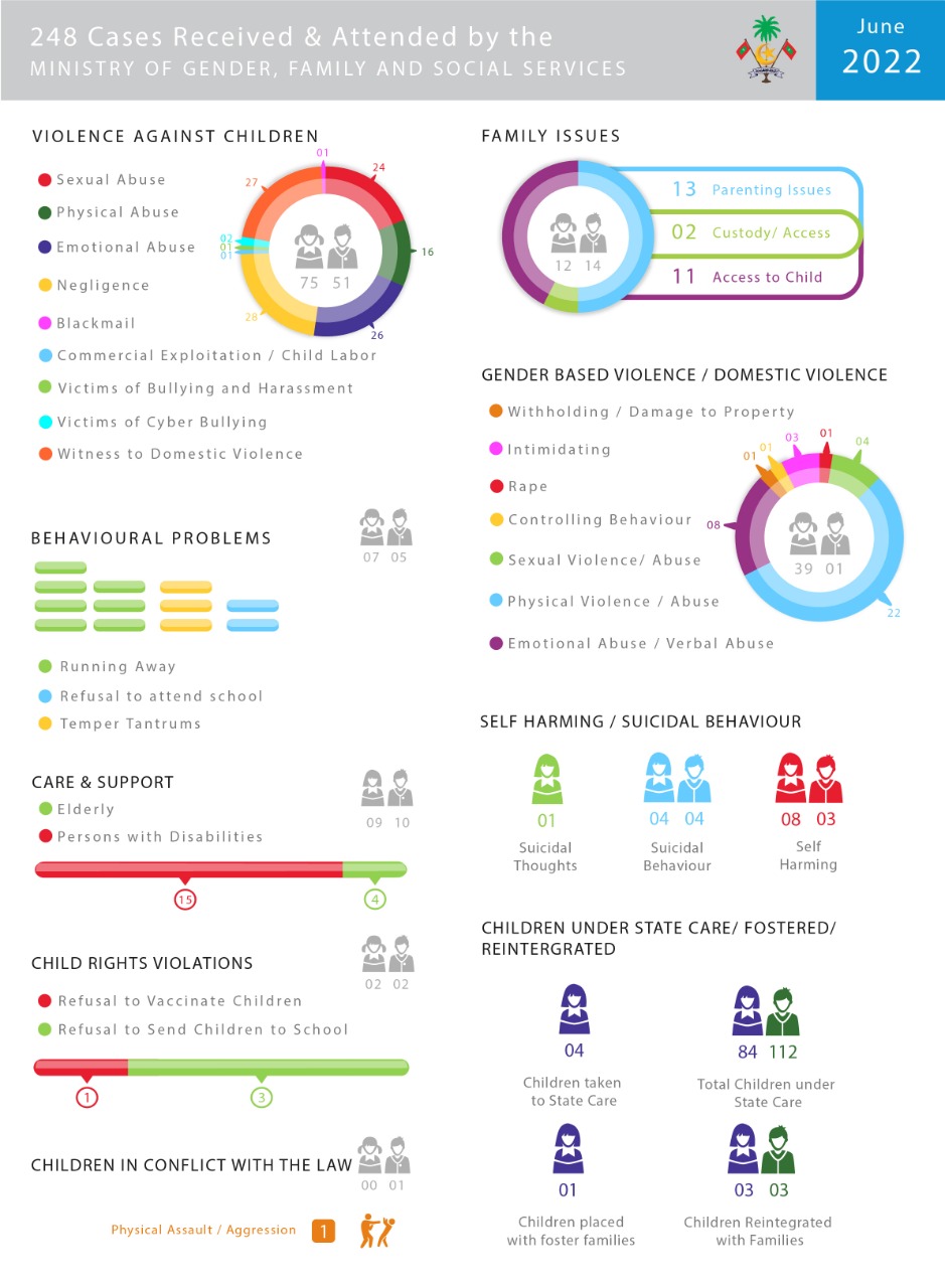 Ministry of Gender, Family and Social Services received and attended to 248 cases in June 2022.