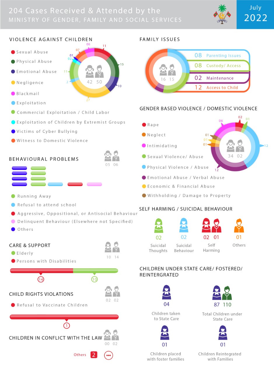 Ministry of Gender, Family and Social Services received and attended to 204 cases in July 2022.